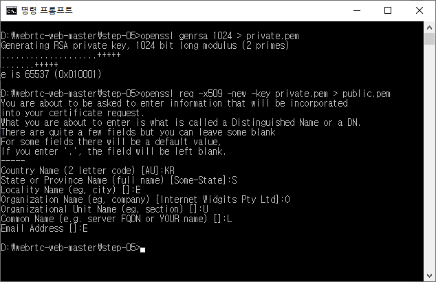 참고: 여기서는 간단하게 키만 생성해서 사용하고, 제대로된 사설 인증서를 만드는 방법은 검색해서 익혀두면 유용하다.