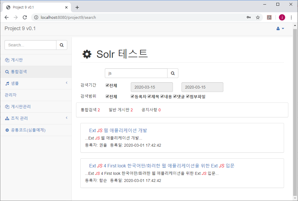 검색은 기존 Prohect9 프로젝트에 구현되어 있으며